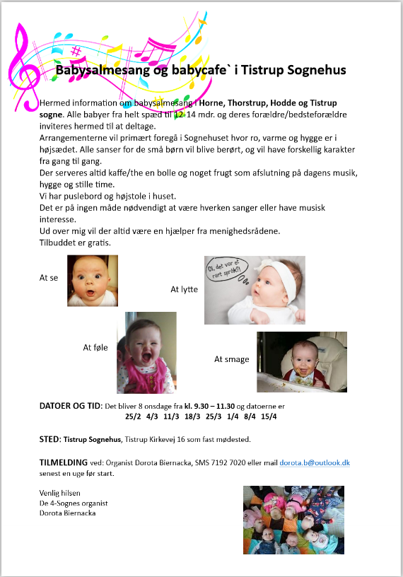 Babysalmesang i Sognehus sognehusetTistrup menighedsrådbabysalmesang 14-10-2025, 12:27 - Tistrup Forfatter: Tistrup Mediehus -Henry × 18-10-2025 - Tistrup Filmklub viser "Forrest Gump" 16-10-2025 - “Få et gratis græskar til Halloween 04-10-2025 - Hellehallen - gratis aktiviteter 02-10-2025 - 35 år på Primo 01-10-2025 - Smykke kursus - Horne Tistrup Aftenskole 14-09-2025 - Højskoledag 2025 07-09-2025 - KUNSTUGEN I VARDE KOMMUNE 30-08-2025 - Tilflytter i Hodde 24-08-2025 - Indvielse af ”Tistrup Strand (på Torvet)” 20-08-2025 - Dronekursus 17-08-2025 - Åens dag 2025 11-08-2025 - Åens dag 2025