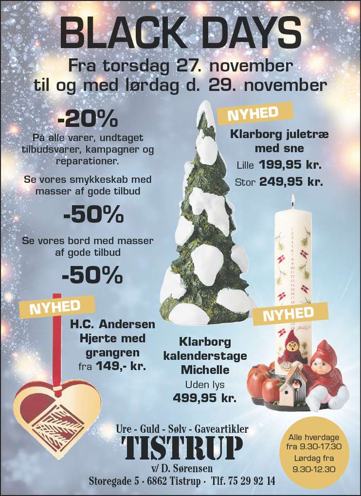 Se mange gode tilbud i "Black Days" hos Tistrup gave,guld og sølv i Tistrup