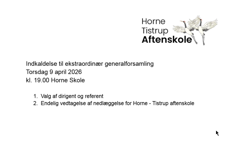 Ekstraordinær generalforsamling vedrørende Horne-Tistrup-Aftenskole
