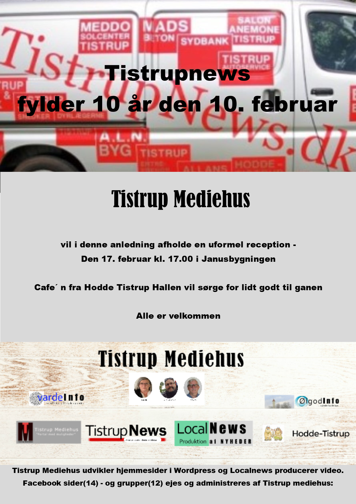 Tistrupnews fylder 10 år 04-02-2020, 05:39 - Hodde-Tistrup Forfatter: Tistrup Mediehus - henry × 07-01-2026 - Aftengudstjeneste 21-12-2025 - Julehilsen fra TM 07-12-2025 - Tag med på rejse med Anne-Vibeke i et foredrag. 04-12-2025 - Tistrup Filmklub viser film i Janus 01-12-2025 - Plastmager elev hos Primo Danmark i Tistrup 24-11-2025 - Guideline til fondsansøgninger 13-11-2025 - Jule tamtam i Janus 06-11-2025 - Jobansøgning - Primo Danmark 02-11-2025 - Nye beboere på Poppelvej 11 30-10-2025 - Julegave ideer fra Tistrup gave,ure,guld og sølv 18-10-2025 - Tistrup Filmklub viser "Forrest Gump" 16-10-2025 - “Få et gratis græskar til Halloween